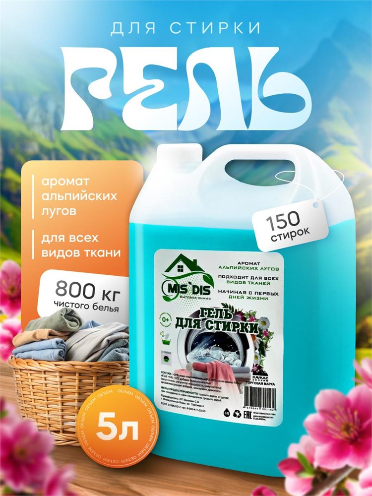 Гель для стирки белья универсальный "Mis Dis" 5 л Аромат альпийских лугов