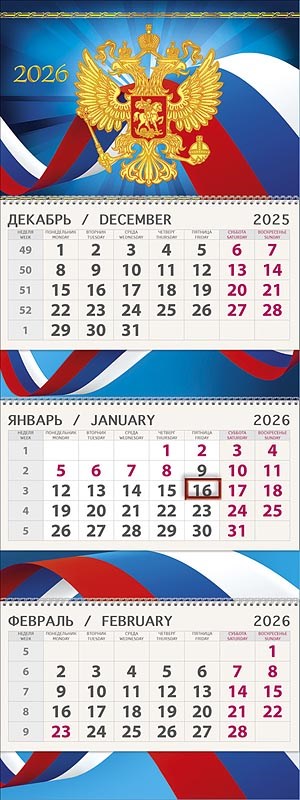Календарь 2026г Арт Дизайн "Герб России" настен. 3бл. 3 гребня, бегунок, 295х210