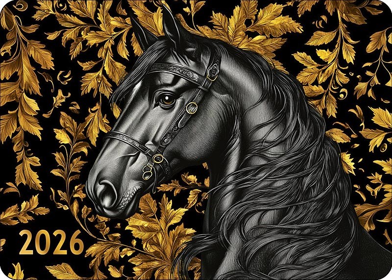Календарь 2026г Арт Дизайн "Лошадь черная" лак, карманный, 70х98