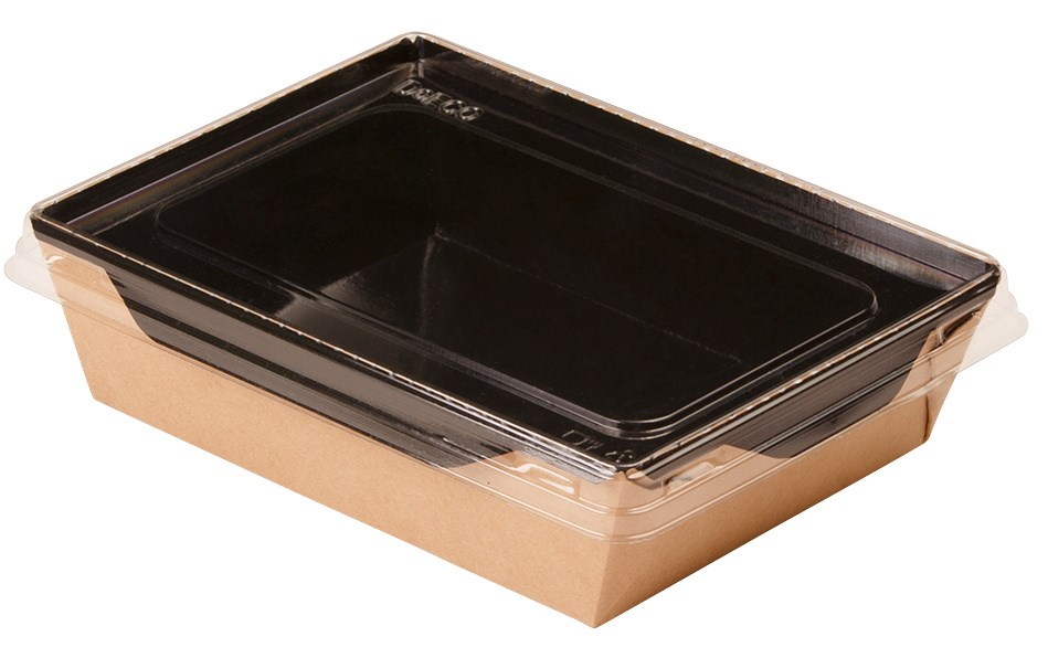 Контейнер бумажный (салатник) ЧЕРНЫЙ с пластиковой крышкой 500 мл 145/160×100/120×45 50/300 ПАКТОН