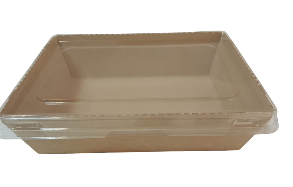 Контейнер бумажный (салатник) КРАФТ с пластиковой крышкой 800 мл 186/207×105/127×55 50/100 ПАКТОН