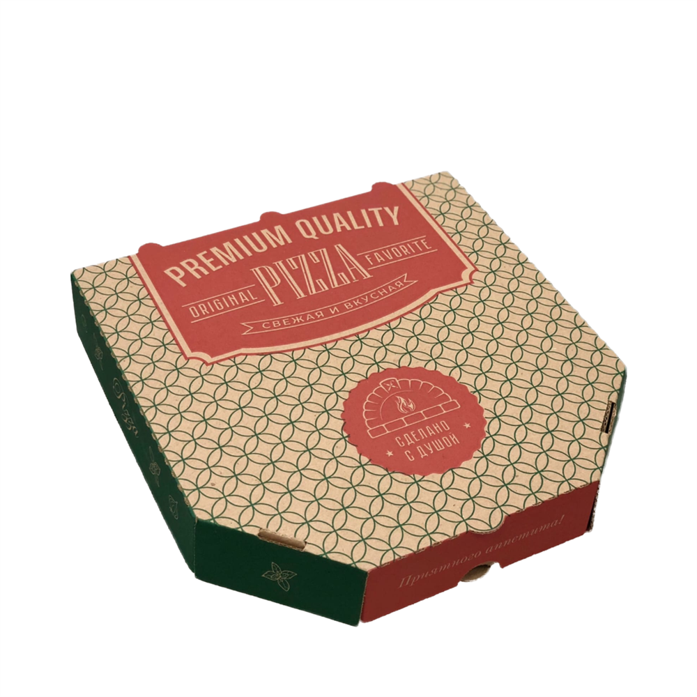 Короб под пиццу цельный гофрокартон Е 350х350 бурый с печатью "Премиум" 50 шт