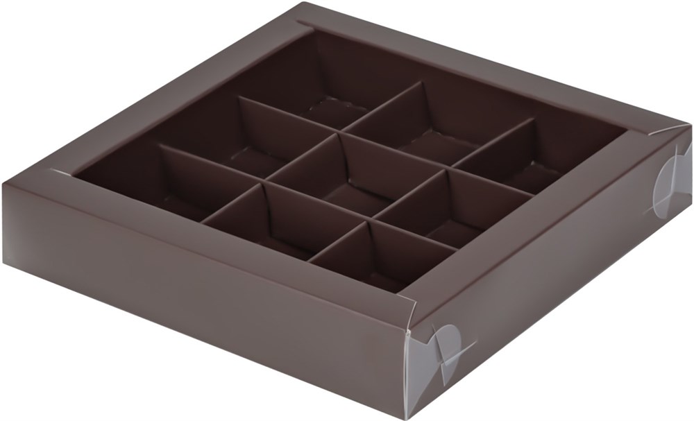 Коробка для конфет с пластиковой крышкой 155*155*30 мм (9) (шоколад)