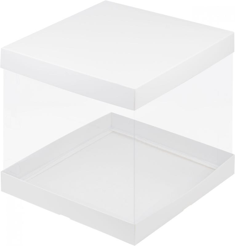 Коробка под торт с прозрачными стенками 235*235*220 (белая)