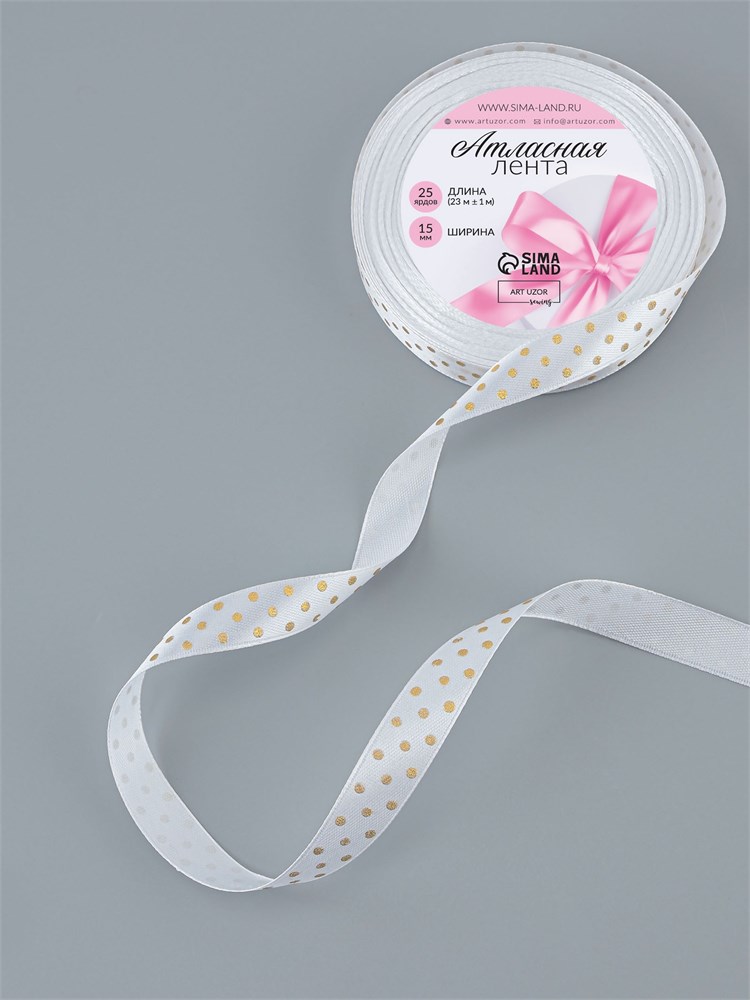 Лента атласная с тиснением «Горох», 15 мм, 23±1 м, белая №01