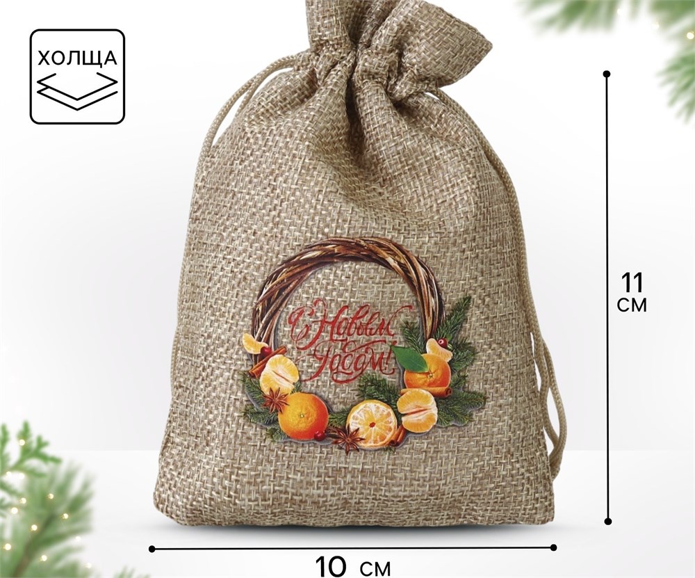 Мешочек новогодний подарочный с термонаклейкой «Мандаринки», 10×14 см ± 1.5 см