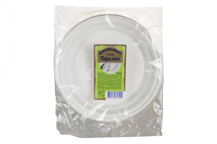 Тарелка пластиковая 170мм 12шт. Миксы (100) шт/кор плоское дно обеспечивает устойчивость при сервировке стола.