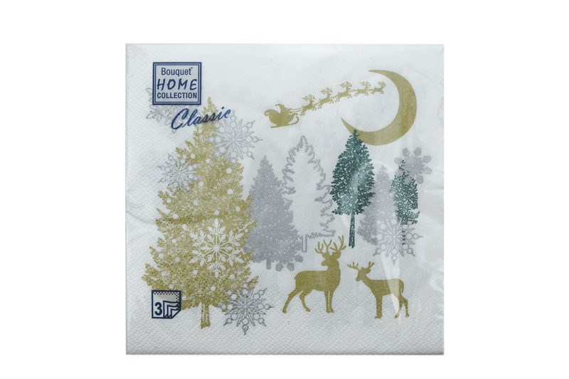 НГ Салфетки 33х33, 20 шт,3 сл. Art Bouquet (12 уп) НГ ЗОЛОТОЙ МЕСЯЦ