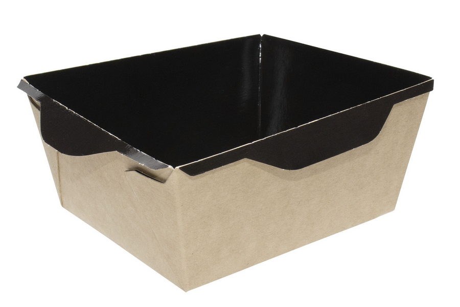 Картонный салатник. Жиро и влагостойкий. Подходит для горячих и холодных продуктов. Крафтовый снаружи и черный внутри