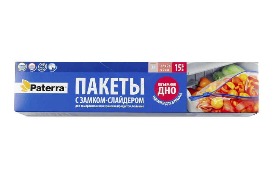 Пакеты для заморозки 27х26 СЛАЙДЕР PATERRA 3 л /1 х 24/ (24упх15шт)