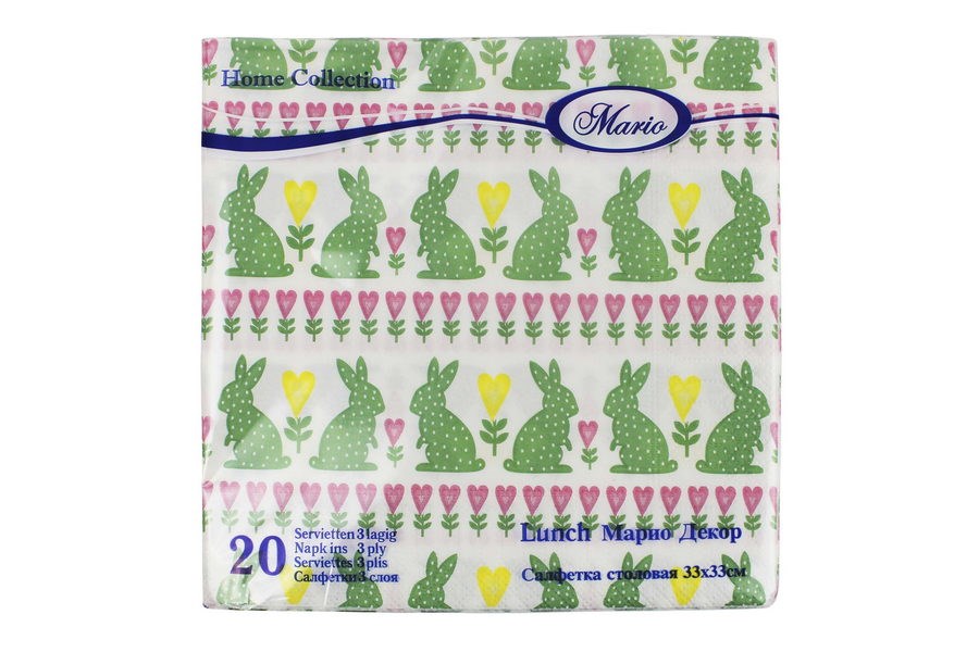 Пасха Салфетки 33х33 3- слойн. (МАРИО) 20л/20уп Пасхальные зайчики