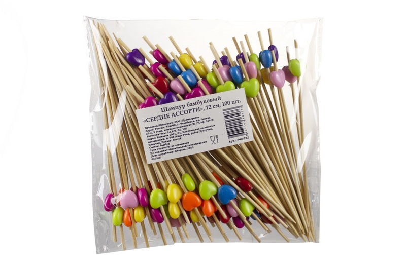 Пика "Сердце" бамбук 12см 100шт ассорти LINGER идеально украсят Ваш стол.