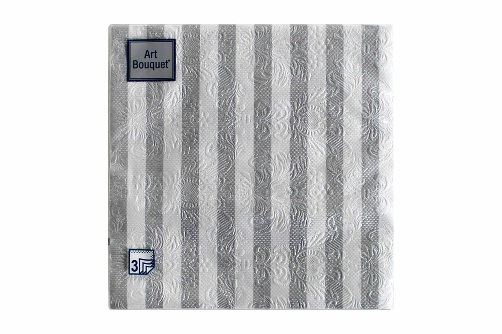 Салфетки 33х33 трехслойные Art Bouquet Барокко полосы серебряные 16 шт (12 уп)