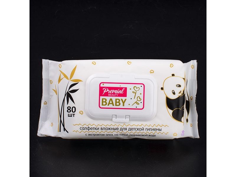 Салфетки влажные ПРЕМИАЛ (80шт) для детск.гигиены алоэ вера (клапан) 1/10