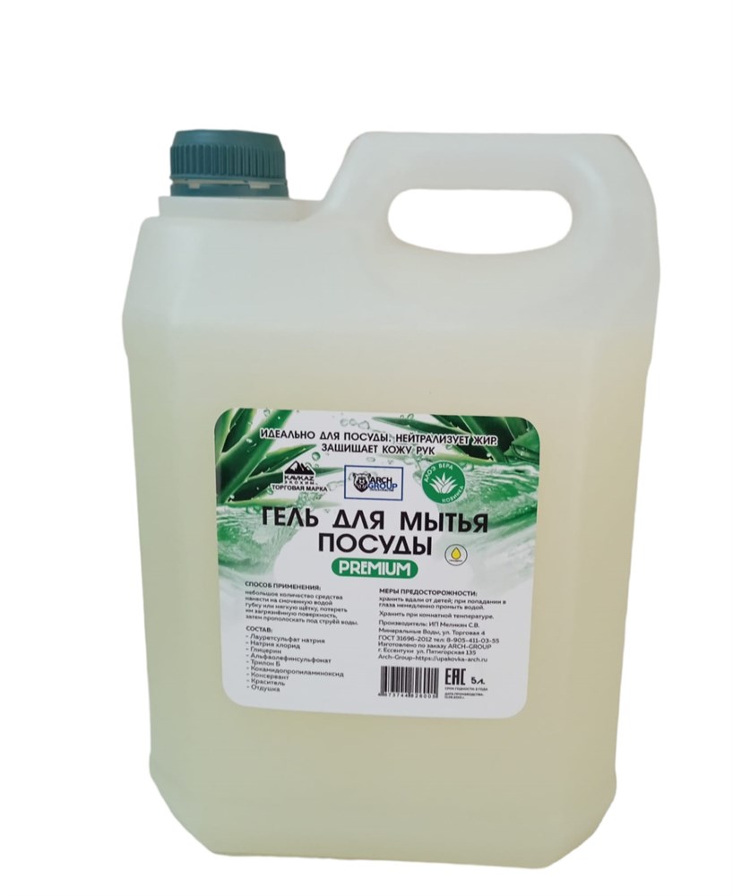 Средство для мытья посуды - гель ARCH GROUP (АРЧ ГРУПП) АЛОЭ ВЕРА ПРЕМИУМ 5 л 1/1