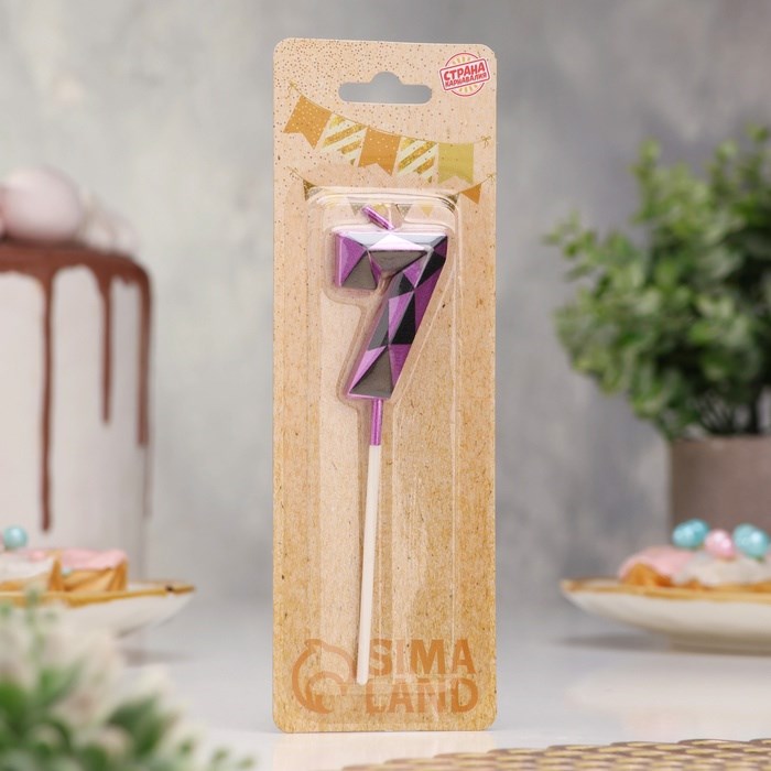 Свеча для торта «Алмаз», цифра 7, фиолетовый металлик