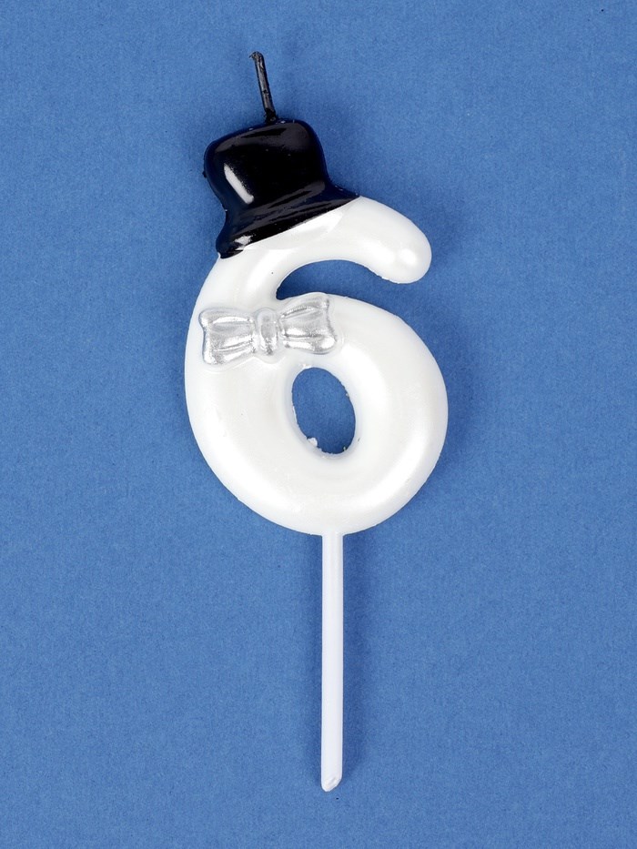 Свеча для торта «Джентельмен», цифра 6, белая