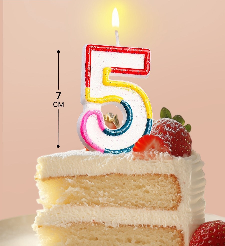 Свеча для торта с блестками «Блестящий ободок», цифра "5" , 7 см 403535