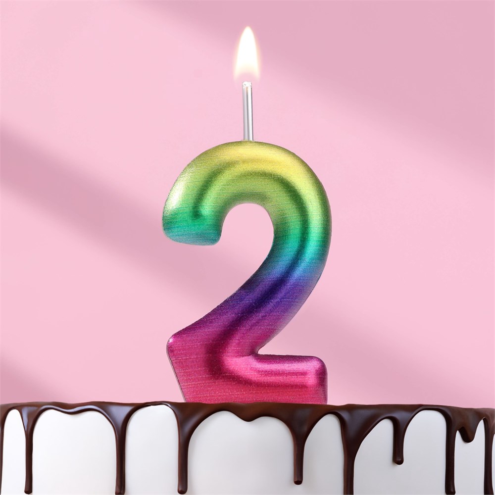 Свеча в торт "Акварель", цифра 2, 5,5 см 120314