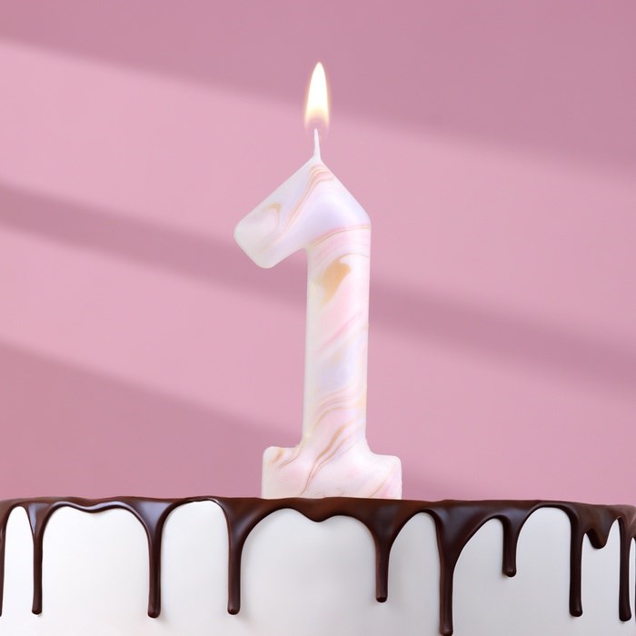 Свеча в торт «Белый мрамор», цифра 1, ГИГАНТ, 12.5 см