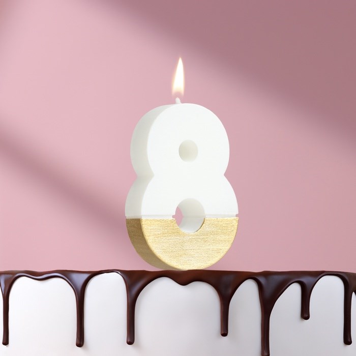 Свеча в торт «Манхеттен», цифра 8, белая с золотом, 5 см