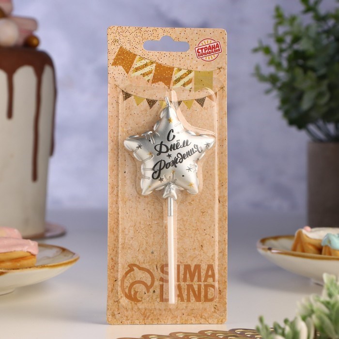 Свеча в торт на шпажке «Воздушный шарик.Звезда», 5.5 см, серебряная