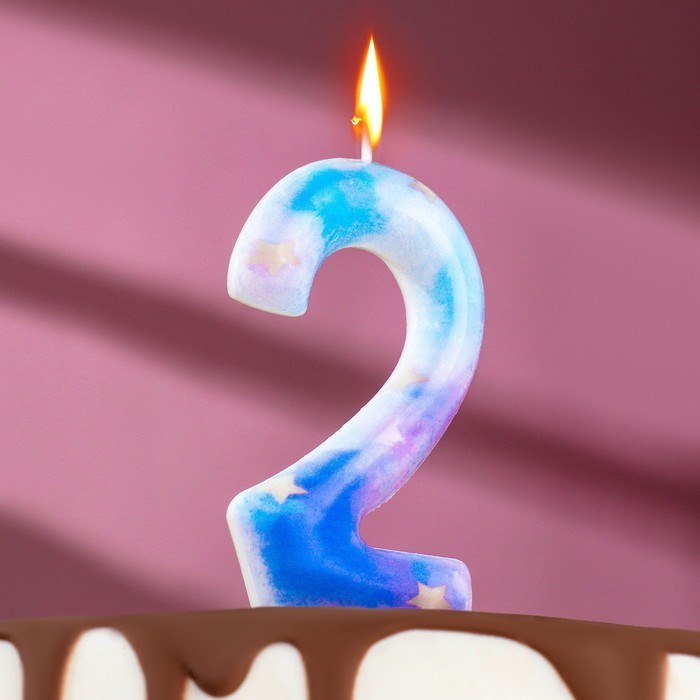 Свеча в торт на шпажке "Звездопад", цифра 2, 9 см, ГИГАНТ 7663122