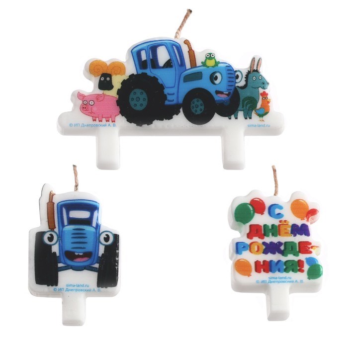 Свеча в торт набор, Синий трактор, набор 3 шт.