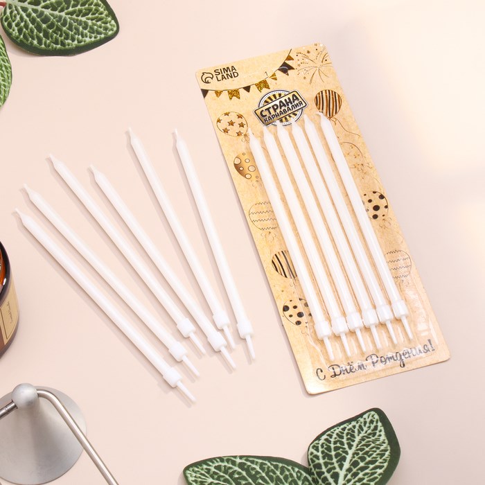 Свечи в торт «Ройс», 6 шт., высокие, 13 см, жемчужный металлик