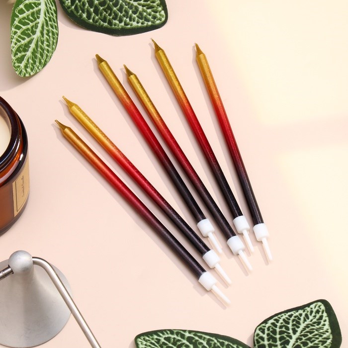 Свечи в торт «Ройс. Градиент», 6 шт., высокие, 13 см, чёрный, бордовый, золотой