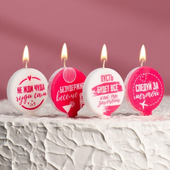 Свечи в торт «С юмором», бело-розовые, 4×4.4 см, 4 шт.