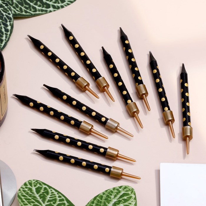 Свечи в торт «Золотая горошина», 6 см, 10 шт., чёрные