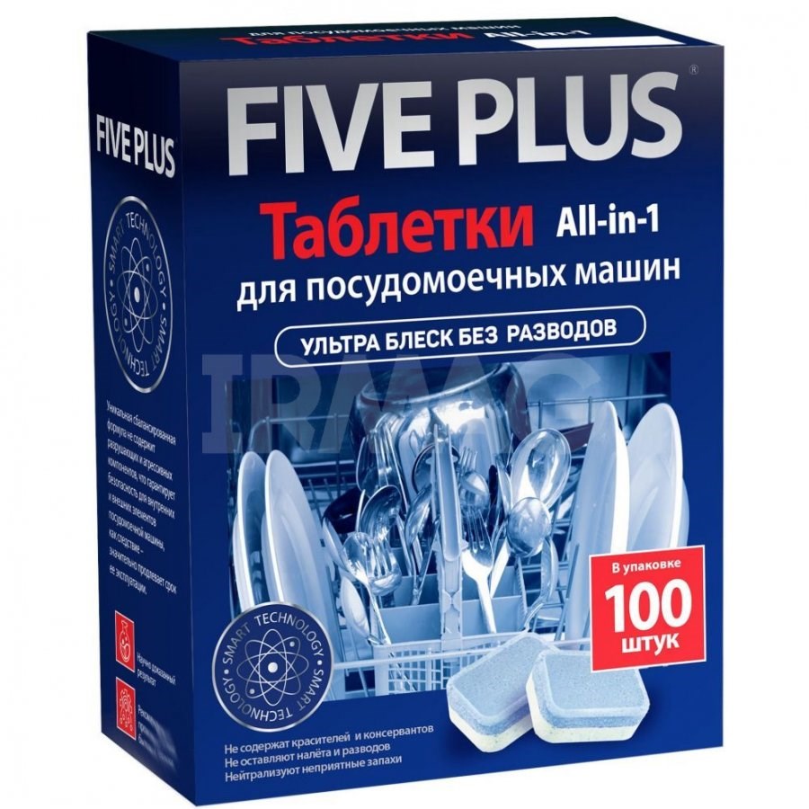 Таблетки для посудомоечных машин Five plus, 100 шт 1/10