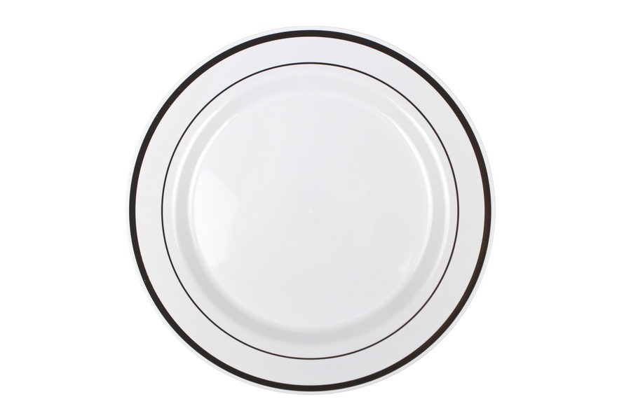 Тарелка пластиковая 190мм с каемочкой полоской золото /36уп х 6шт/