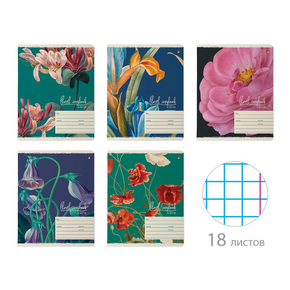 Тетрадь А5 18л. клетка АЛЬТ "Цветы.Феерия" обл.мел.бум, скр.углы, 5 видов.