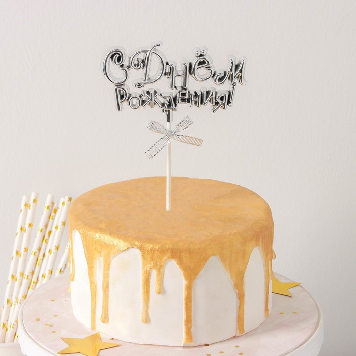 Топпер для торта «С Днём Рождения!», 18×10.5 см, серебристый