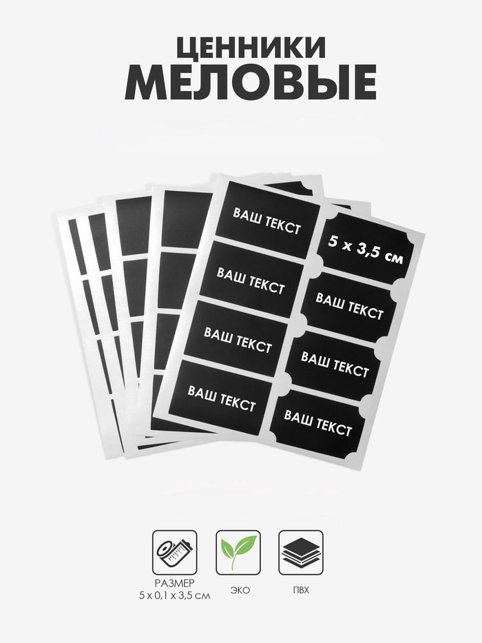 Ценники самоклеящиеся меловые «Прямоугольник», 40 шт., 5×3.5 см, чёрные