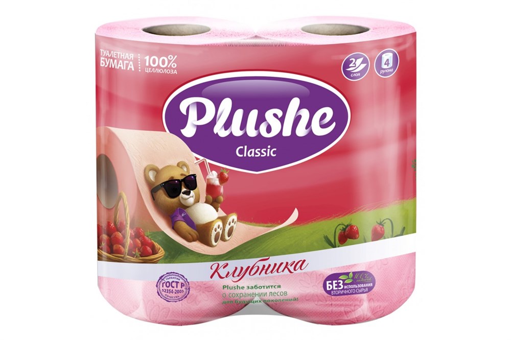 Туалетная бумага Plushe Classic "Клубника" (плюше классик) 4 рулона 18м, 2-х слойная 1/12 в уп ЮГ