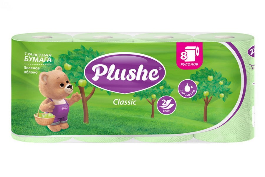 Туалетная бумага PLUSHE плюше Classic 2-х сл. 18м (8рул) Зел. яблоко пастель (8уп)
